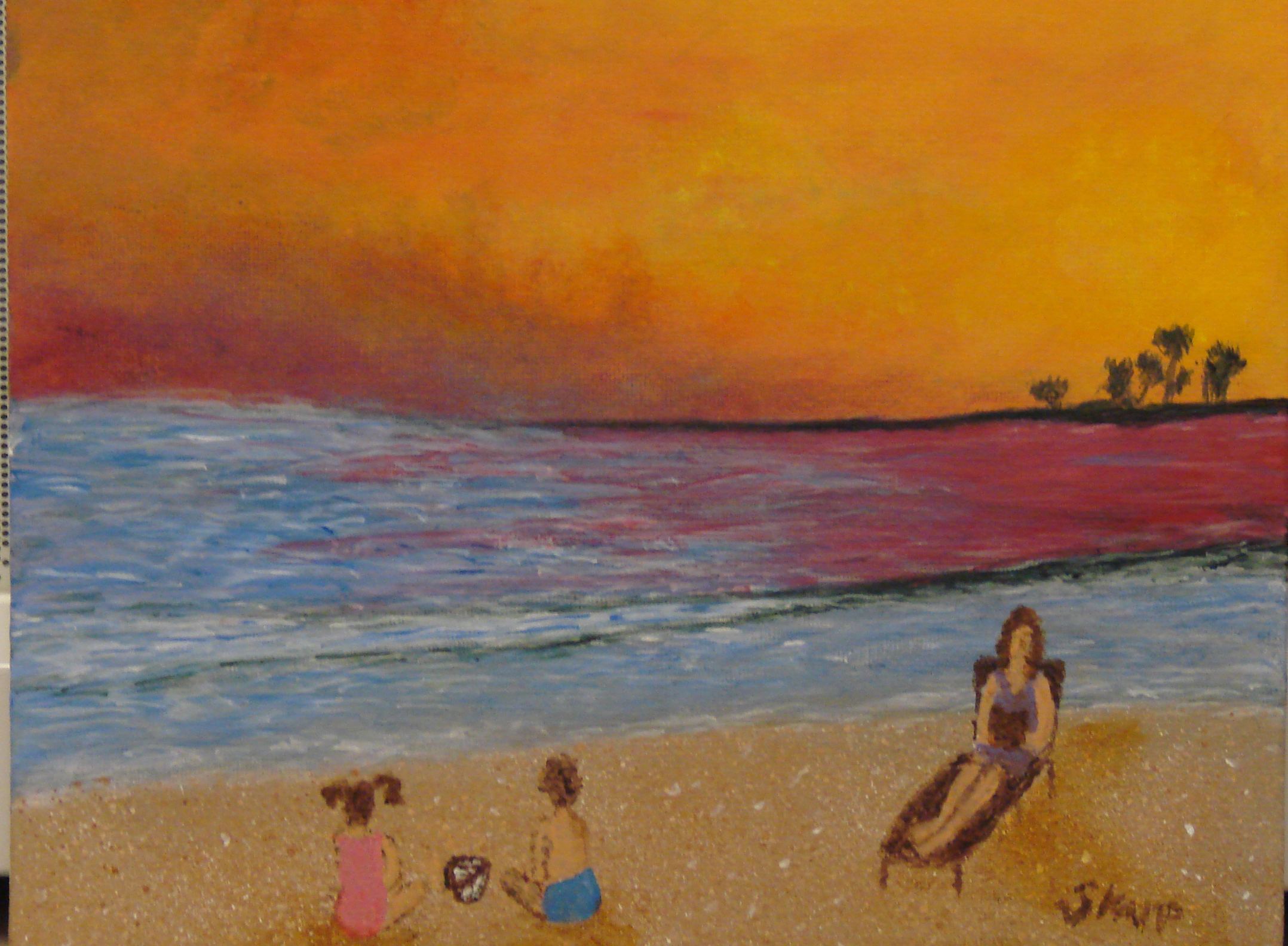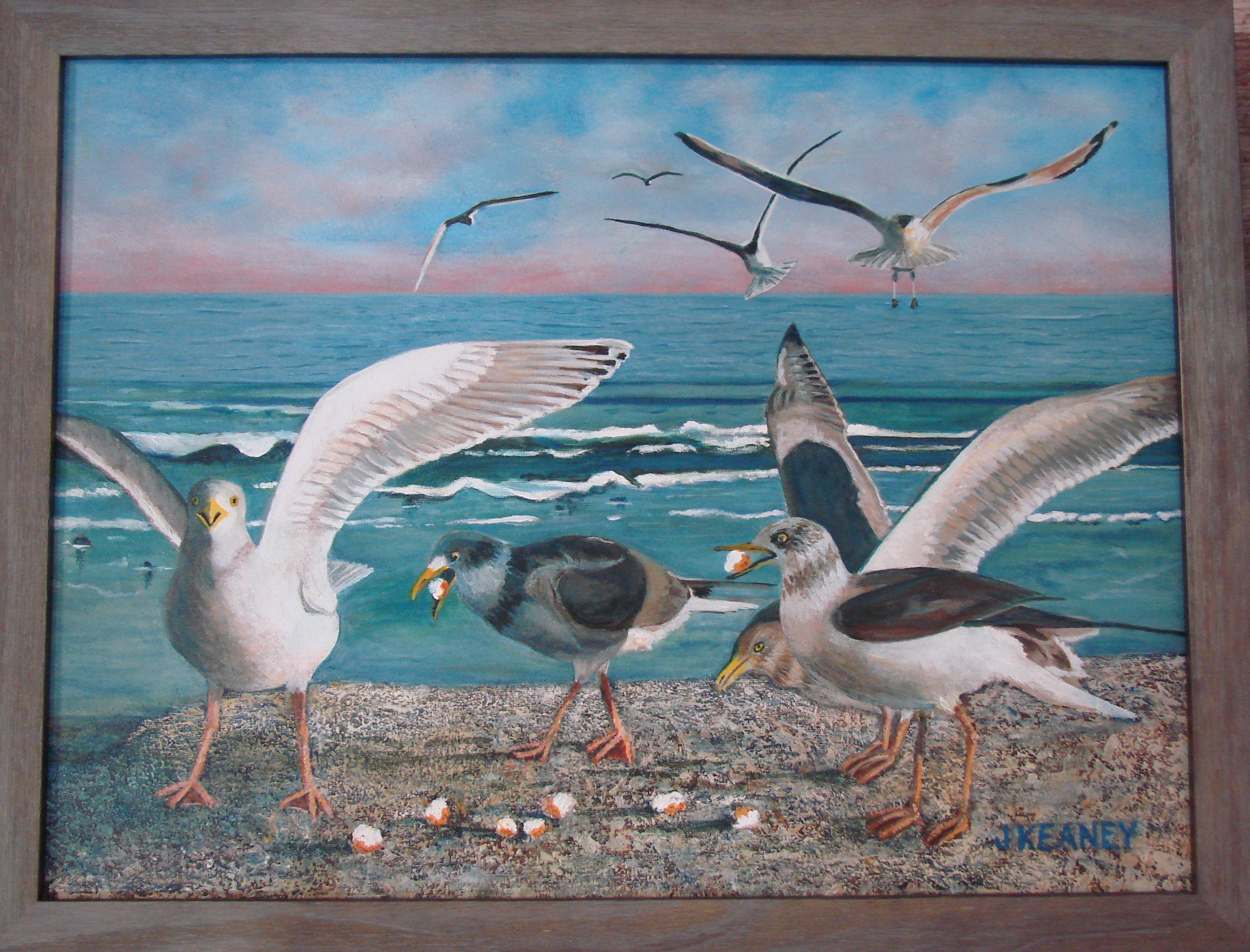 Joanne K. Gulls Galore, acrylic on canvas. 18 x 24, 2014.