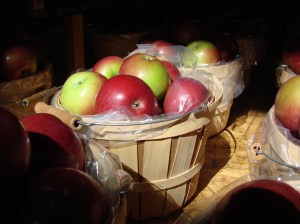We visited Mann’s Apple Orchard, Methuen, MA last week, and I took a bunch of photos of the produce for sale. There were a couple of good shots in the two dozen photos I took that I thought would make good paintings. There was a dormer in the roof of the barn, and a single shaft of sunlight was hitting a group of baskets of apples on a table. The photo had strong sunlight on the apples, and deep shadows around the edge. This framed the baskets of apples perfectly. I started this painting on the 15th, and will continue the work and update the page in the Painting Process soon.