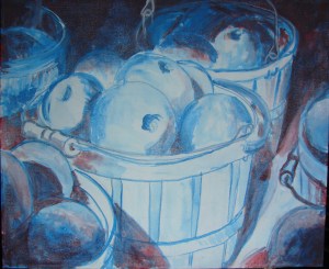 Here is the apple photo and the under painting for Apples in Sunlight. Stay tuned for weekly updates on this and a second painting of cilantro hot peppers, also in the works.