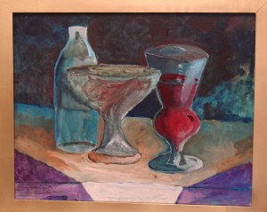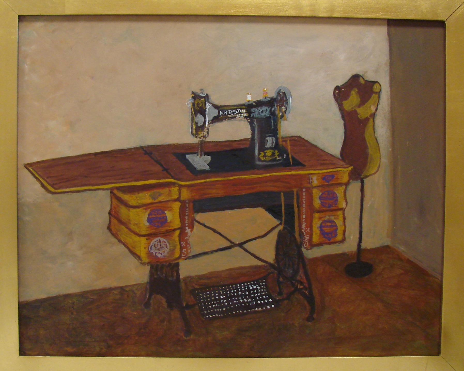 Here is an update on three of my student’s paintings. Mike is creating a still life using several photos as a reference, and working on glassware with reflected and refracted light. Jim has finished another dog and will start a large (24 x 20) landscape next. Tom’s sewing machine is coming along well and almost done.