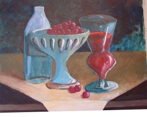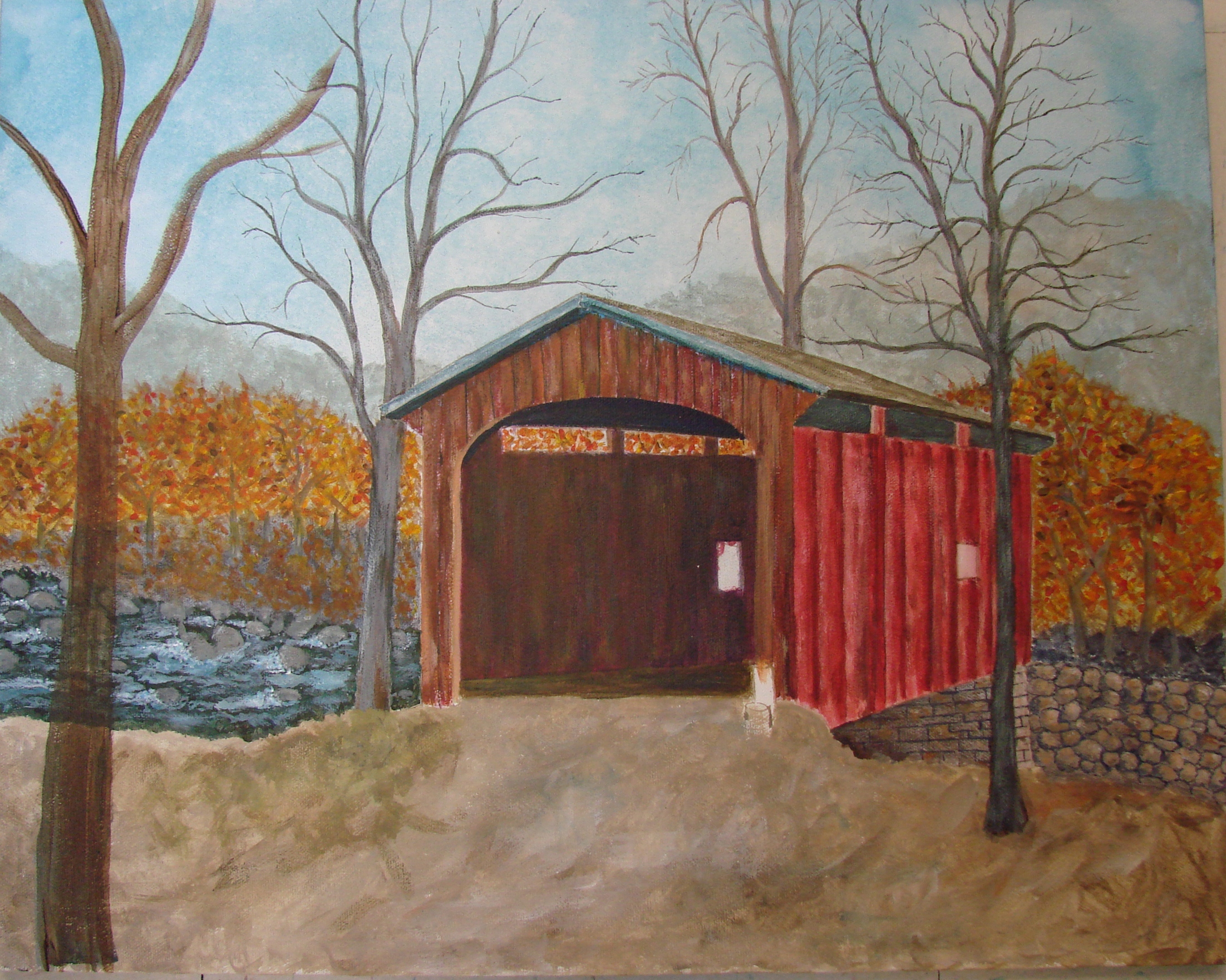 Gerry F., a new student, has started his first painting. Jim S. is working on a new landscape. Mike H. is closing in on his still life with glass. Bob H should finish his covered bridge next week.