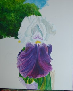 I started a painting of an iris that I photographed at the Ingram Senior Center. I am using an ultra-smooth canvas with five coats of gesso rolled and scraped on. Each coat was sanded after it was completely dry.
