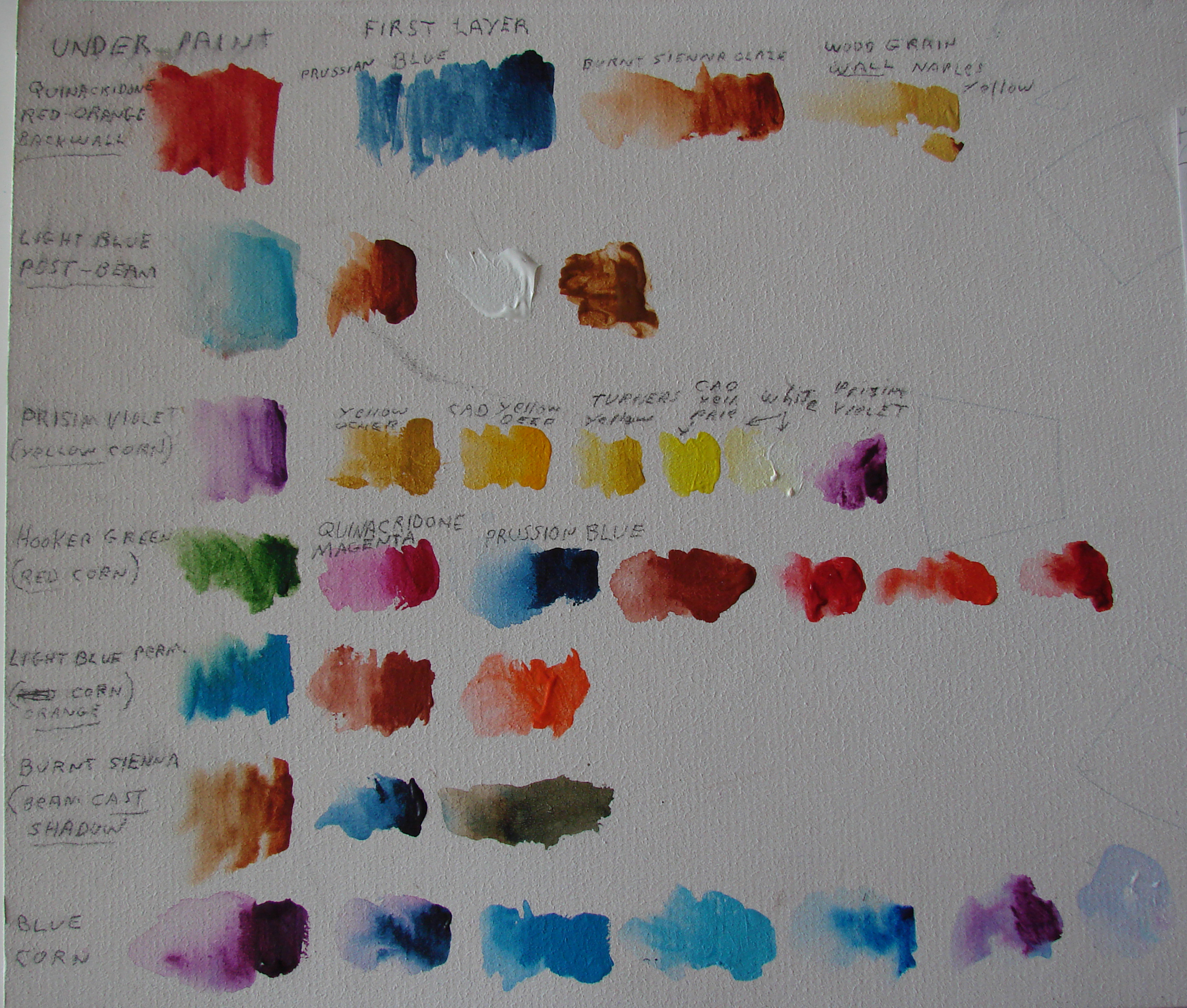 - Kept a record of the colors you uses during the development of the painting. A small daub of paint pulled into a wash works well.