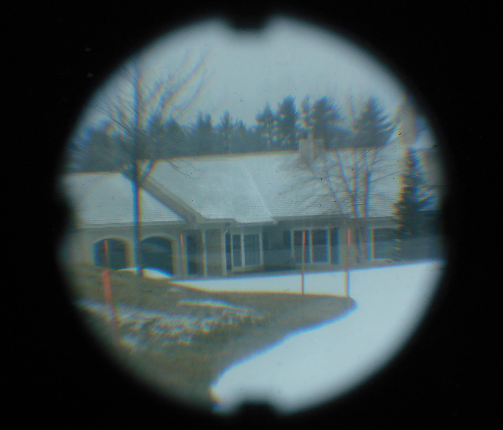 Photo 13. This photo was taken on a heavily overcast day during a snow storm.  The building was approximately 300 feet away.  The image is right side up, but reversed.