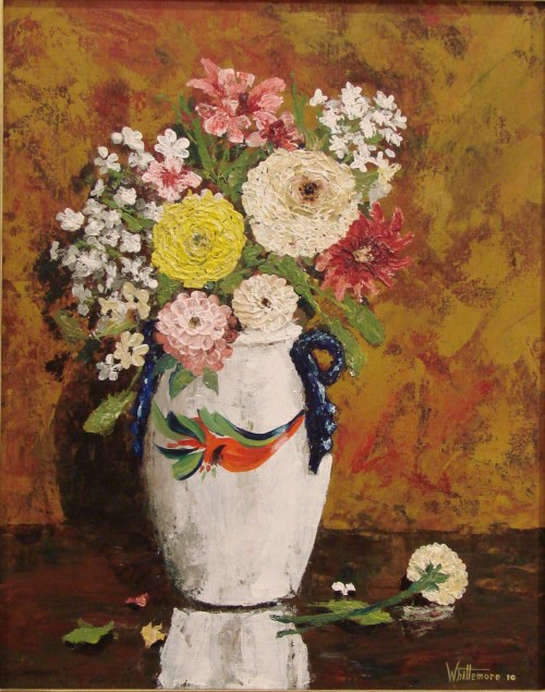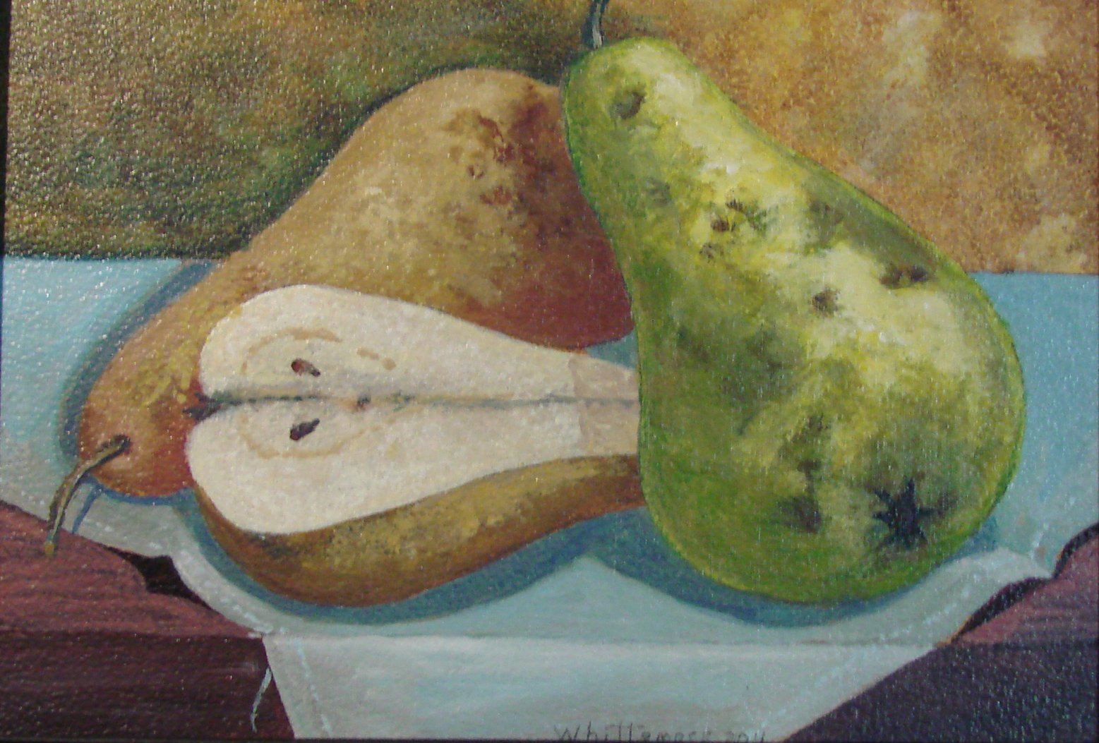 I went back to my favorite subject, still life. I had several of these objects in the studio. The wood shoe, glass insulator and small black jar were found in antique shops, the birds and scissors were my Mother-in-law’s, and the Hot Wheel truck is my grandson’s. The shadow box and other items were from my imagination. A fun painting to do with all the different surfaces and textures to paint.