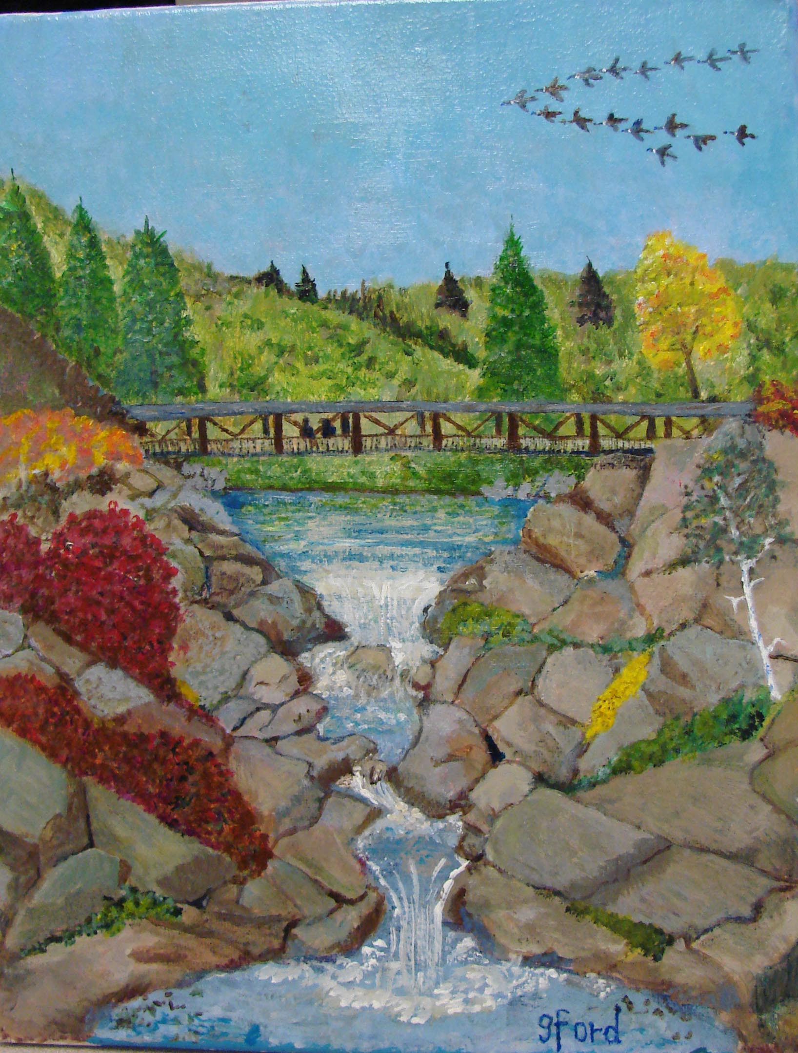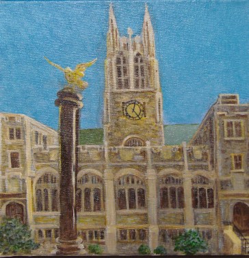 Jerry F. completed these two painting after he left the class a few weeks ago. His work continues to improve. The first is Boston College, Gasson Hall, where he went to college. The second is a river view. Jerry will be returning to class ASAP.