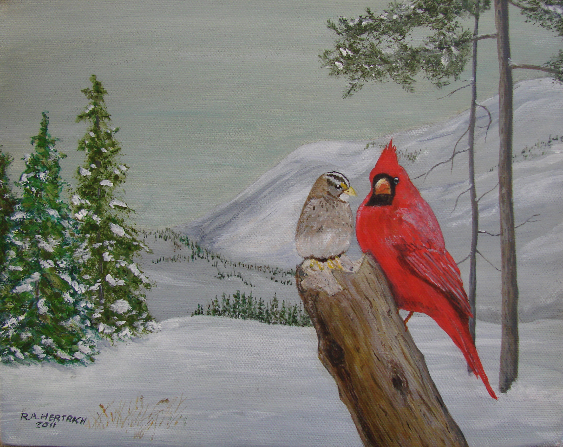 Jerry F. completed his third and fourth paintings as a matched pair of birds in December, 2010.