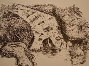 Deb T. 3-11. Pen and ink waterfall.