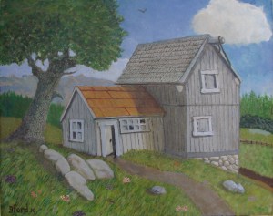 Jerry F. completed his second painting in October, 2010. Jerry combined elements from two drawings he did and rearranged them to produce this very good second painting.