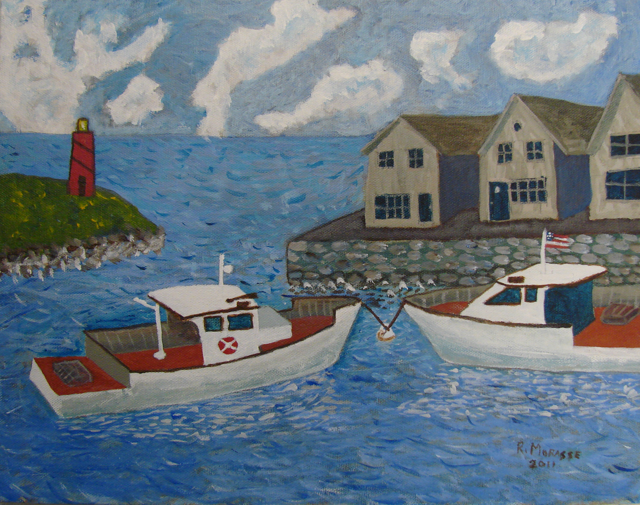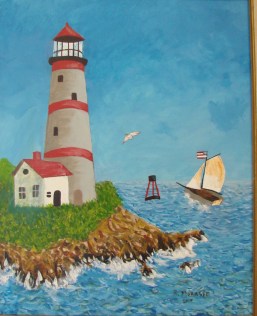 Roland M. 2-10. Lighthouse painting completed in his previous class.