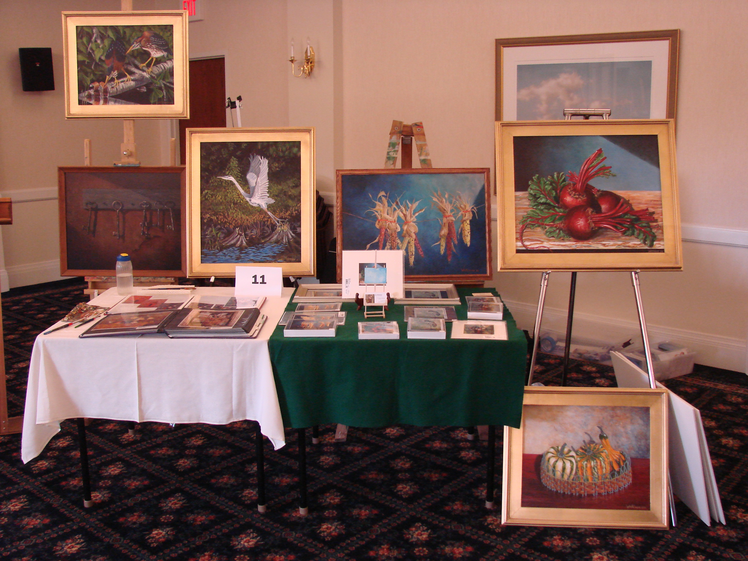 There was a steady flow of patrons stopping by to chat, ask questions and admire all of the terrific art work shown by these talented artists. I had four paintings in various stages of progress, and was able to show folks all of the steps, from canvas preparation to finished painting, using the “story boards” with progressive photos of the work.